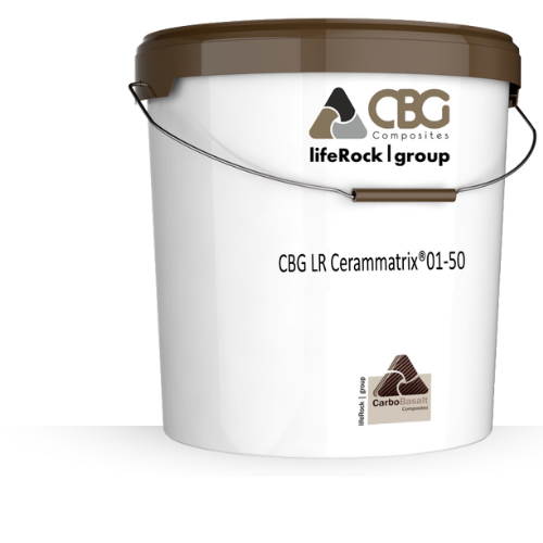 Adesivo mono componente não combustível de baixa viscosidade, à base de água, com efeito endotérmico, feito de componentes naturais, principalmente formações rochosas e microfibras de basalto. O CBG LR Cerammatrix®01-50 é utilizado para colar produtos feitos de fibras minerais (basalto, carbono, vidro), bem como lã mineral e/ou metais.
